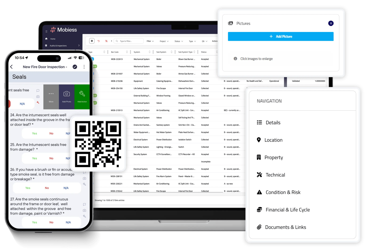 Utilising Barcodes and QR codes, Mobiess will allow you to retrieve the asset attributes & key data upon re-inspection.